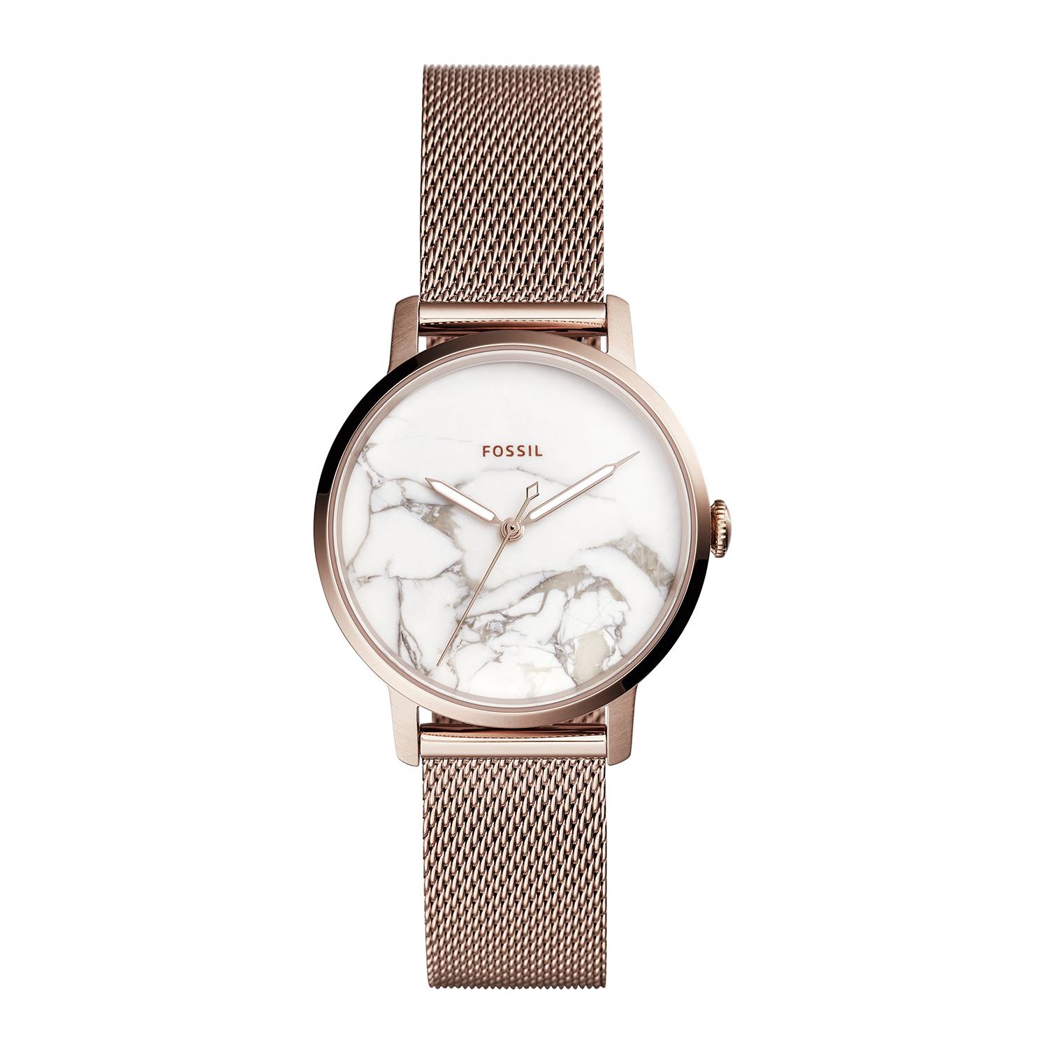 Vẻ thời trang dành cho phái đẹp với đồng hồ Fossil ES4404 ẩn chứa dưới mặt kính cứng cùng thiết kế mặt số được gia công họa tiết hoa văn khoác lên vẻ thanh lịch đầy trẻ trung khi phối cùng mẫu dây lưới vàng hồng.